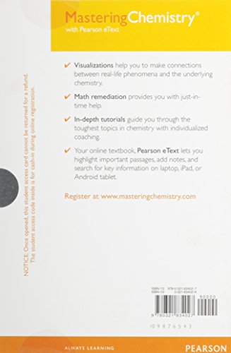 This is the standalone access card for MasteringChemistry providing access to the resources of MasteringChemistry® in addition to Pearson eText content.
