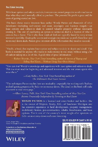 With lease options and subject-to deals, investors can control properties worth much more than what they could normally afford to purchase. The potential for profit is great and the costs of getting started are low. This book shows novice investors how author Wendy Patton and thousands of other Americans - including well-known real estate developers and business moguls - use lease options and subject-to deals to control valuable property without necessarily owning it. The cost of purchasing an option or subject-to deal is a fraction of what it costs to buy a home. That's why these kinds of deals are typically found in every serious investor's portfolio. Sharing the secrets and strategies investors use to profit from low- and no-money-down deals, Patton gives investors all the information they need to succeed. 'Finally, a book that explains lease option and subject-to deals in depth and detail. This book is essential for anyone who wants to make money in real estate without using a lot of cash or taking on a lot of risk. A gold mine of great information' - Robert Shemin, "New York Times" bestselling author of "Secrets of Buying and Selling Real Estate Without Using Your Own Money!" 'Few can rival Wendy's knowledge and experience with lease option and subject-to deals. This is a must-read for beginning and advanced investors and the real estate agents who serve them' - Gary Keller, "New York Times" bestselling author of "The Millionaire Real Estate Investor". 'The techniques Patton teaches here are invaluable - especially for working with Realtors and still getting properties for little- or no-money-down. The detail in this book will make you want to read every page' - Albert Lowry, PhD, "New York Times" bestselling author of "How You Can Become Financially Independent by Investing in Real Estate".