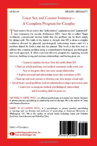 There seem to be no end to the “authoritative” explanations and “guaranteed” easy treatments for erectile dysfunction (ED). Since the so-called Viagra revolution, conventional wisdom holds that the problem can be fixed simply by taking a pill. The truth of the matter is, though, that ED is often a complex condition affected by physical, psychological, and relationship issues—and it’s a problem shared by both a man and his partner. This book is the first ever to address this common problem using a comprehensive biological, psychological, and social approach. It offers a proven-effective program for regaining erectile function, building strong and intimate relationships, and having great sex.